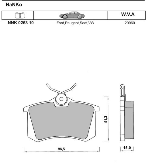 Наименование | Применяемость | Front/Rear | Фото | Обозначение по каталогу NNK | W.V.A. |